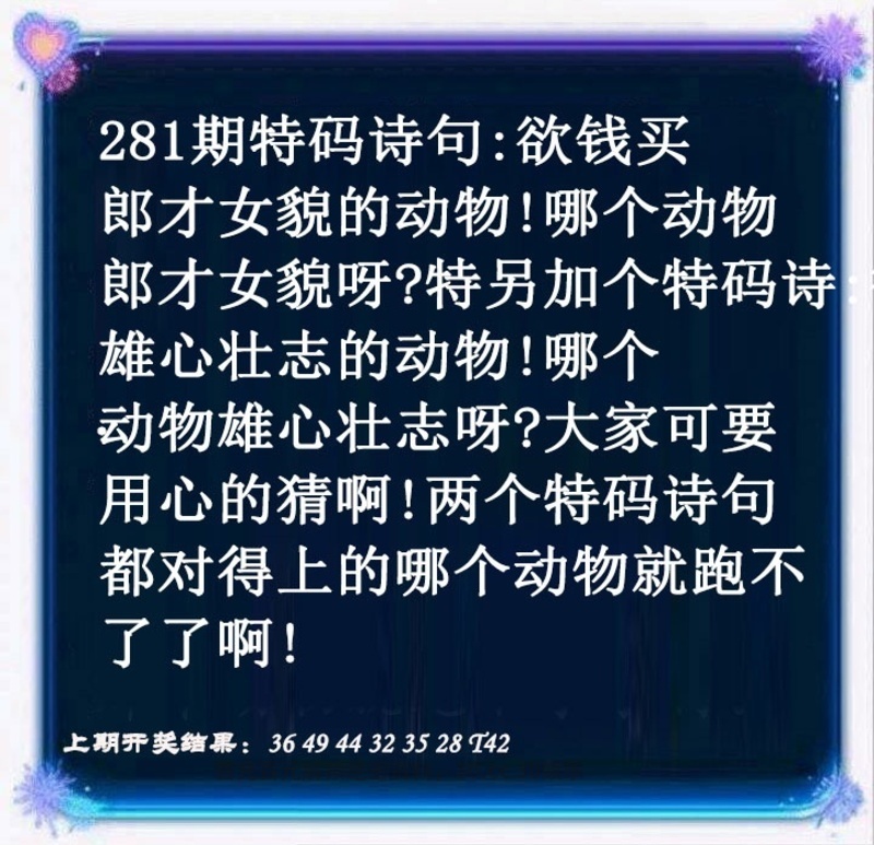 281期:单双中特【双数】开:羊47错 |